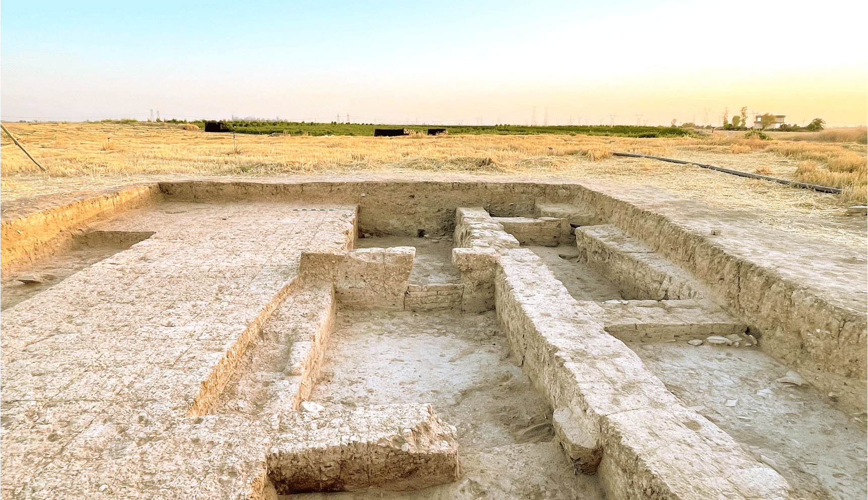 عمارة ضخمة من الطوب اللبن في الجزء الجنوبي من قصر المدينة السفلى في موقع كرد كابورستان، باتجاه الشمال. الائتمان: بإذن من تيفاني إيرلي-سبيدوني.