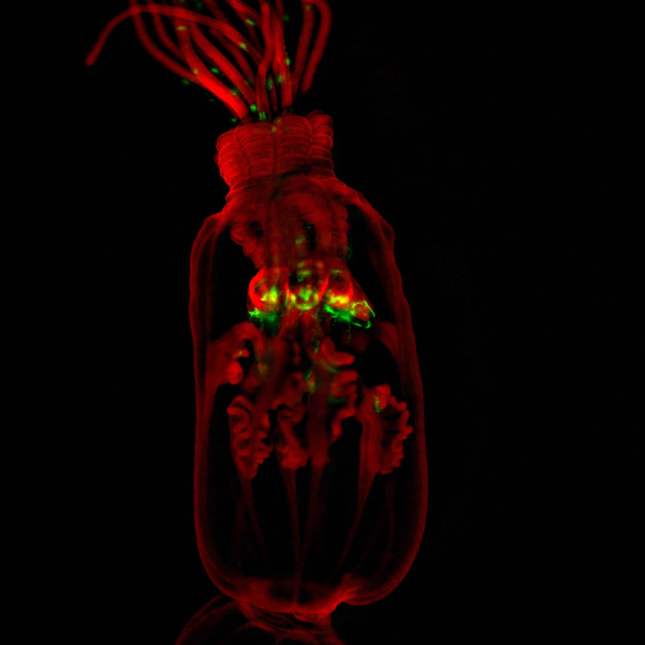 زنبق البحر الكامل والمشرق. يشير اللون الأخضر إلى الموقع الذي يوجد فيه إثراء للخلايا الجذعية. الصورة: شاني تاليسا